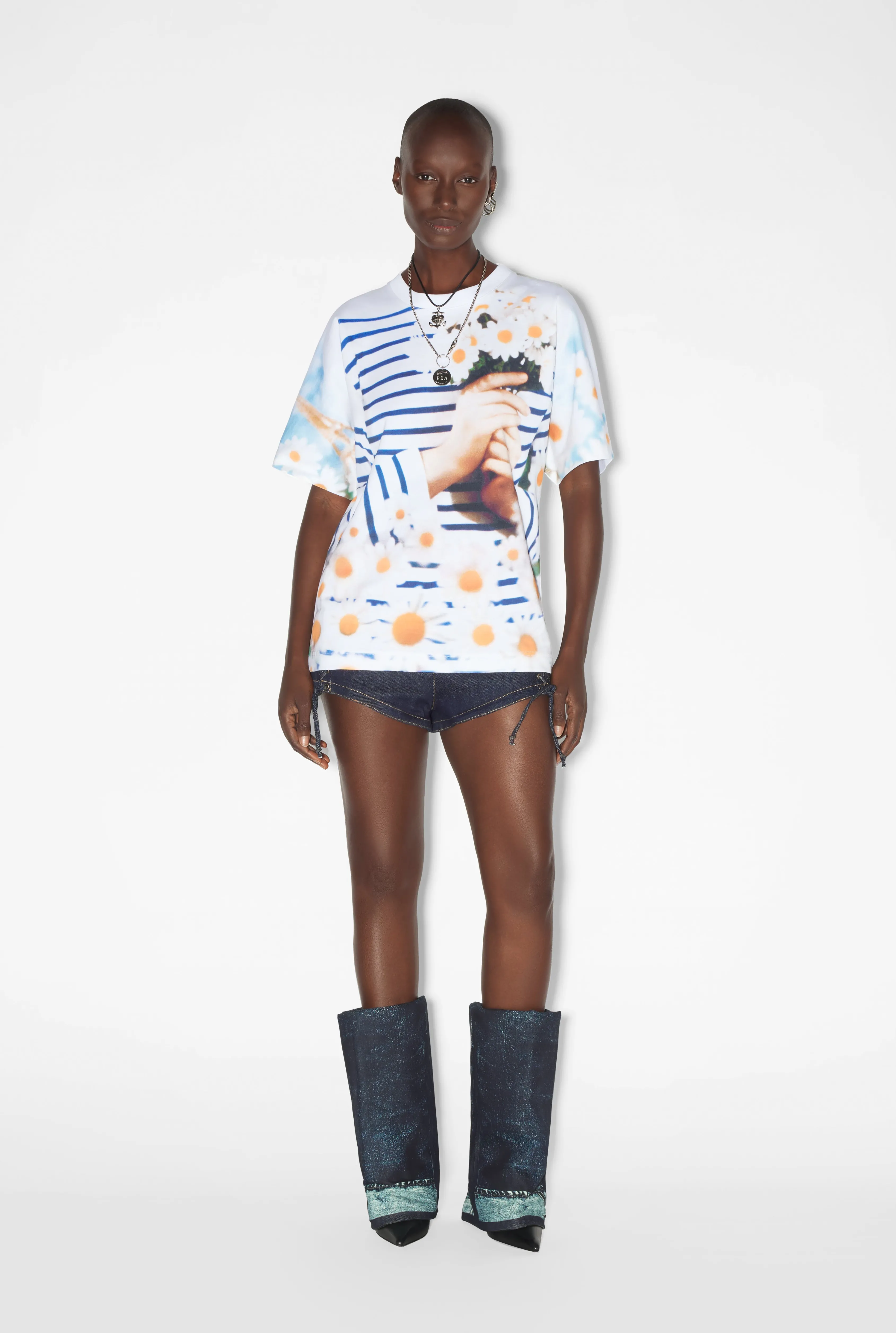 Thick cotton T-shirt inspired by the portrait of Jean Paul Gaultier by Pierre & Gilles from 1990.