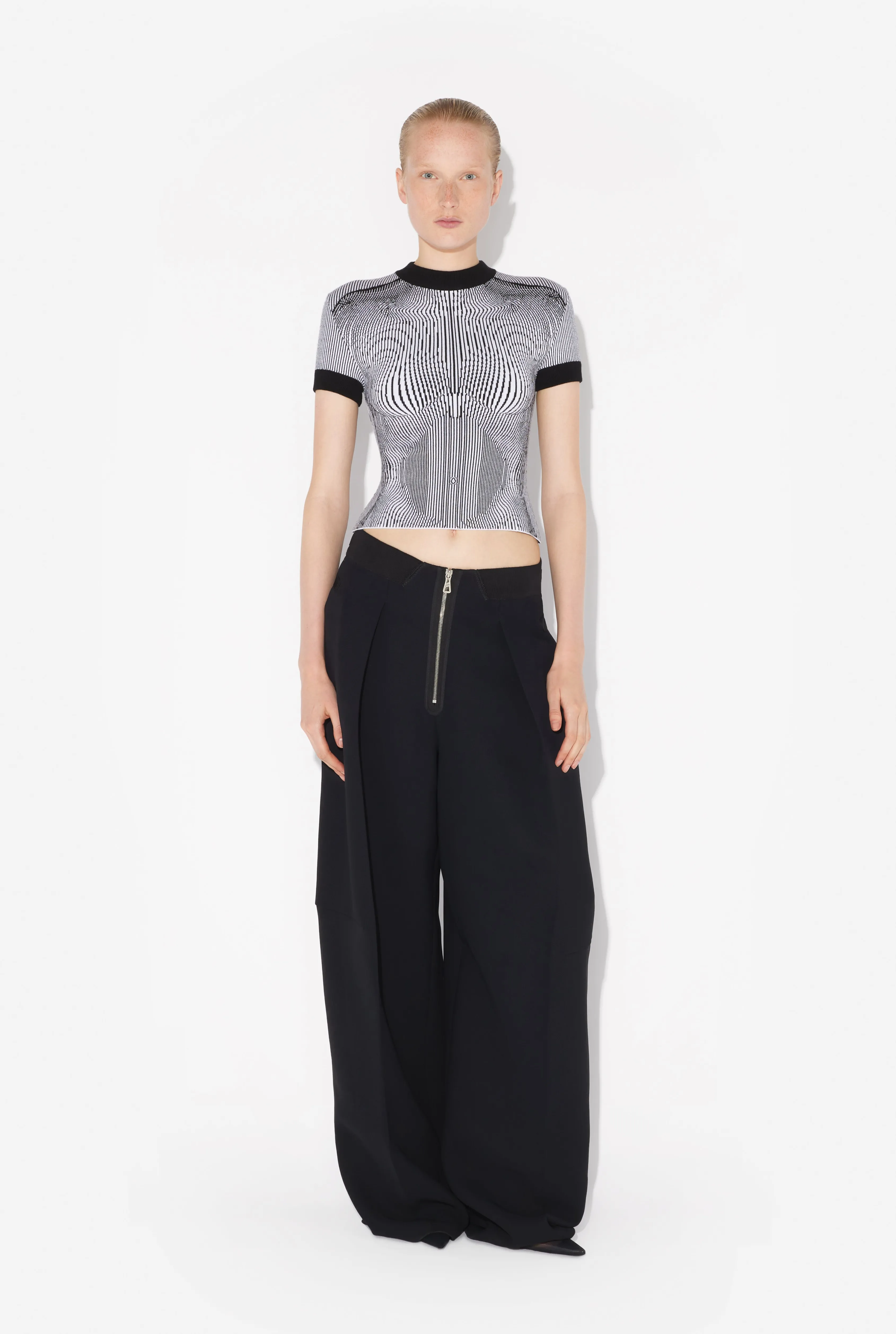 Black and white “Morphing Pinstripes” jacquard T-shirt.